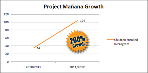 In less than one year, Project Mañana has experienced 206% growth; going from providing a private education and