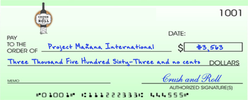 All said and done, Crush and Roll presented a check to Project Mañana in excess of $3,500!